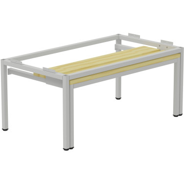 Lavice pod šatníky svařované výsuvné: kvalitní ocelový čtvercový profil 25 x 25 mm, povrchově upravený práškovou barvou, sedáky jsou z masivního lakovaného dřeva.