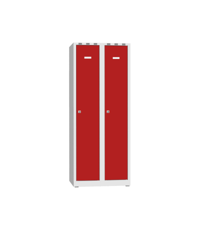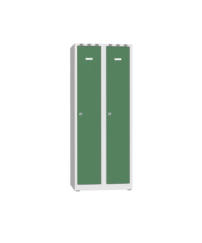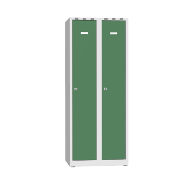 Équipement vestiaire: porte étiquette plastique, porte et doubles parois, charnieres indégondables, tablette, tringle cintres et 2x Crochet.